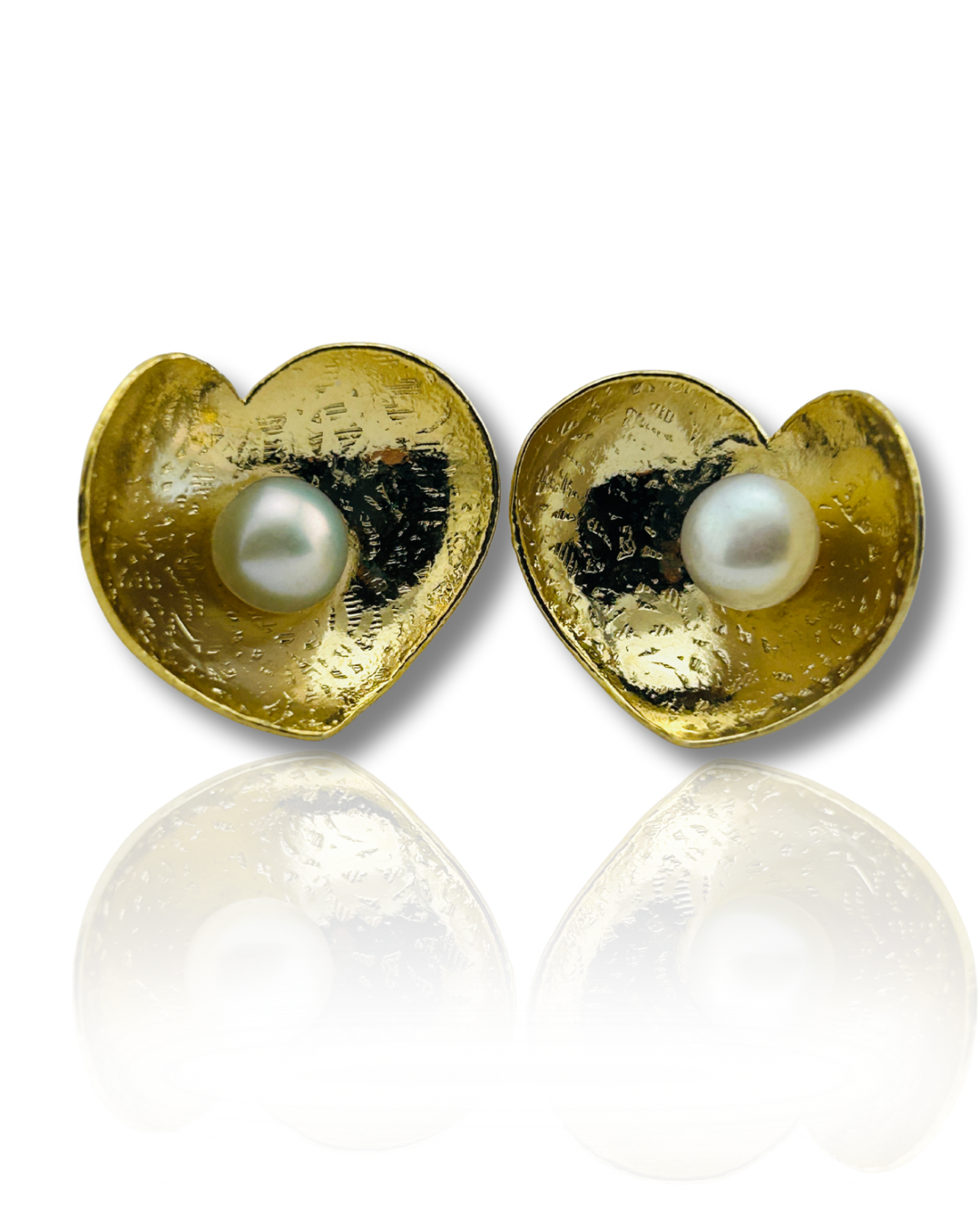 zarcillos en bronce con baño de oro 18 kilates y cabuchon de Perlas cultivadas .